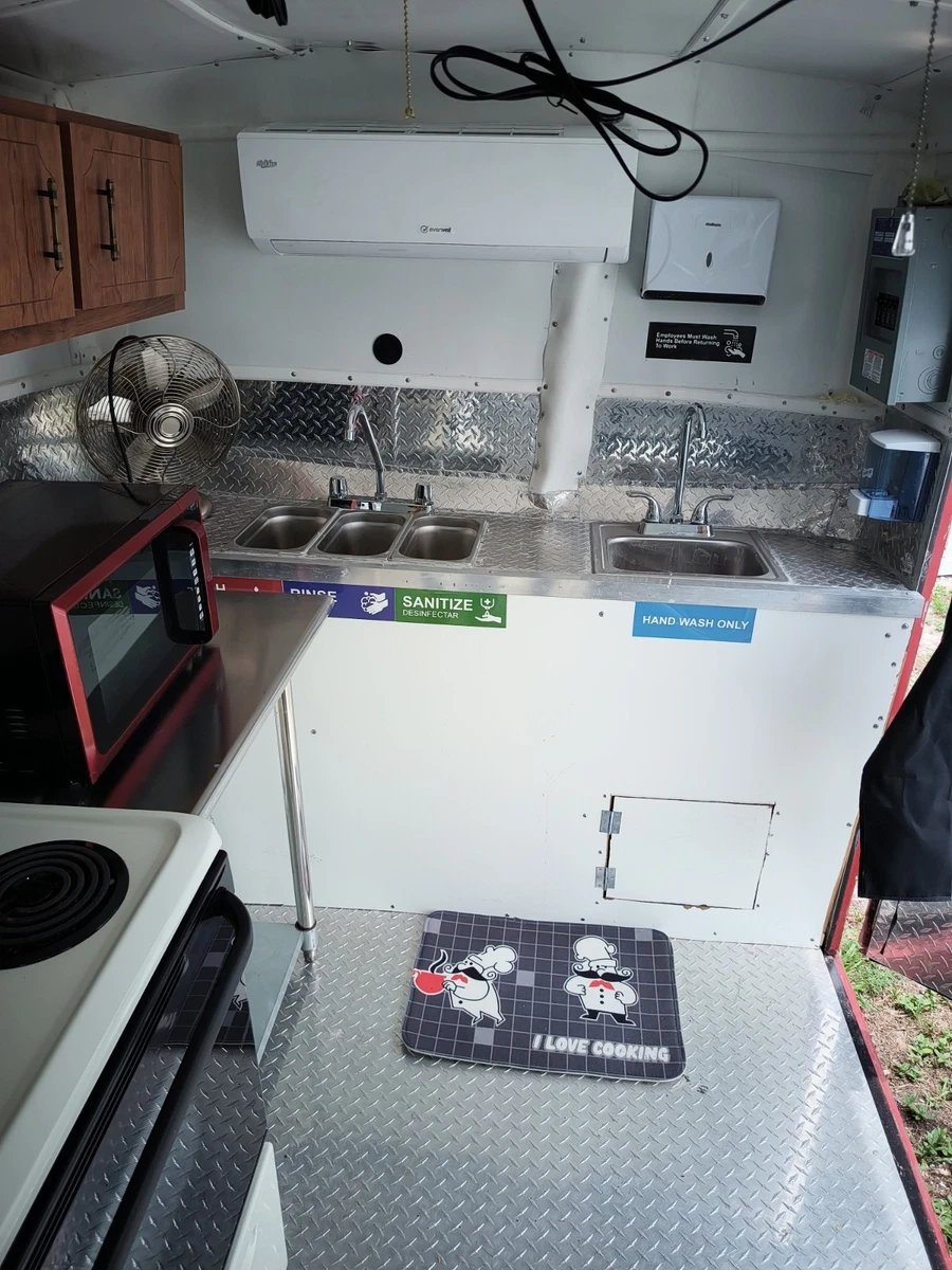 Sinks & Plumbing: Fully compliant with health regulations, featuring hot and cold running water, a three-compartment sink, and a hand-washing station.
