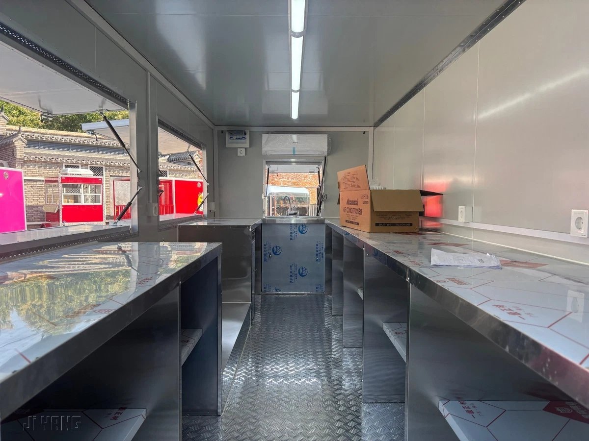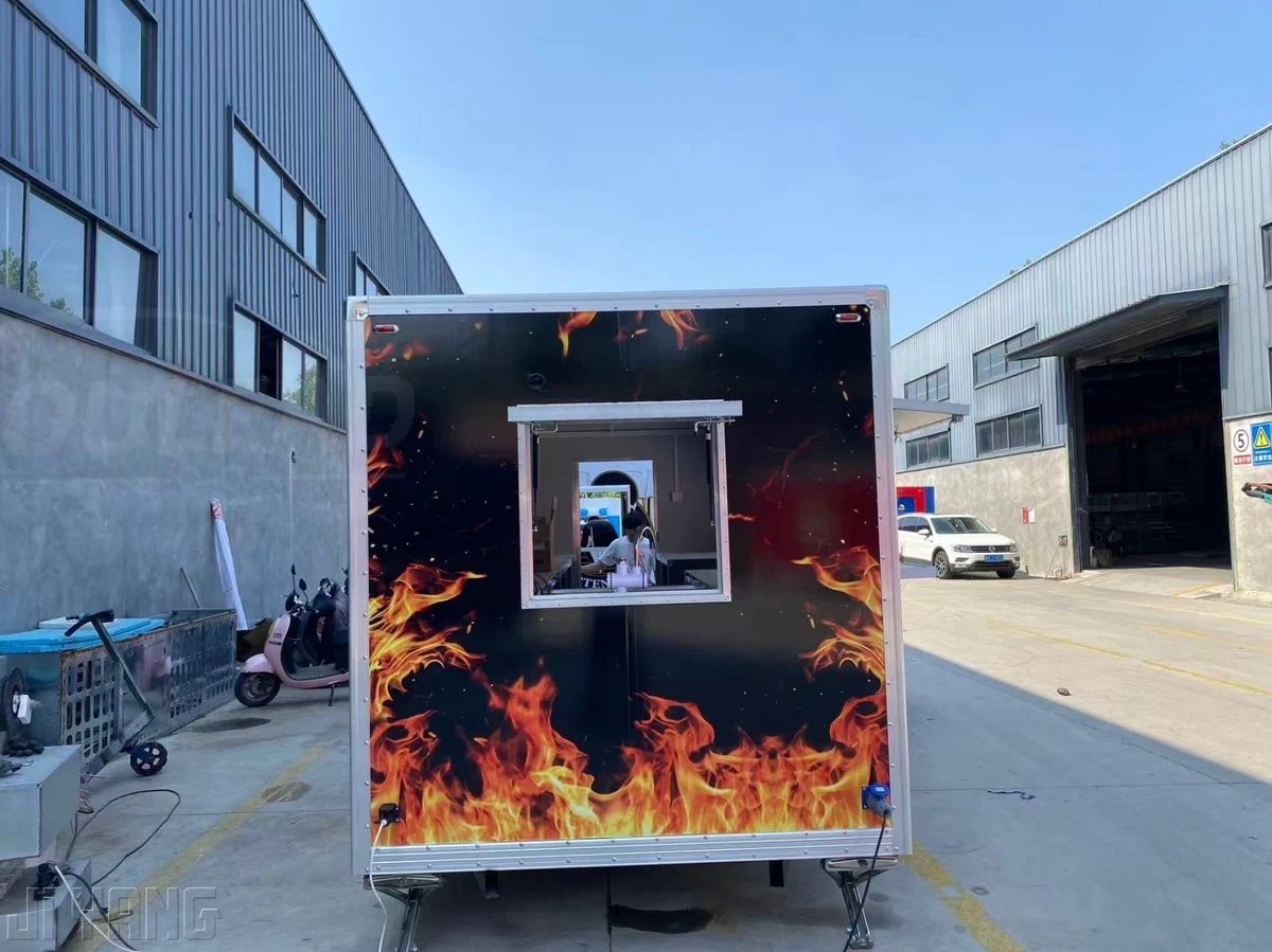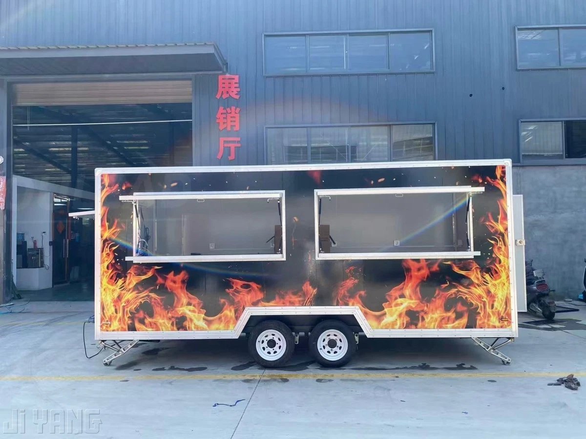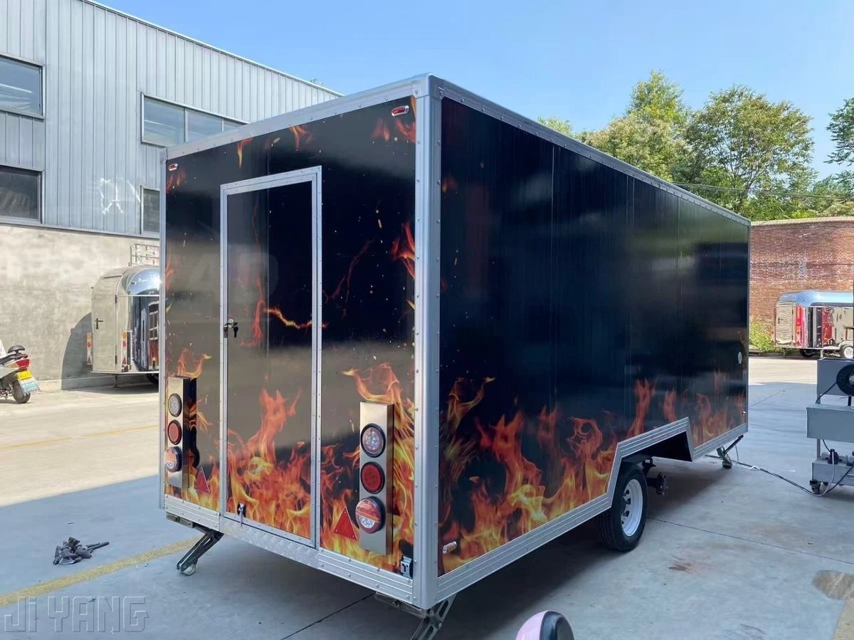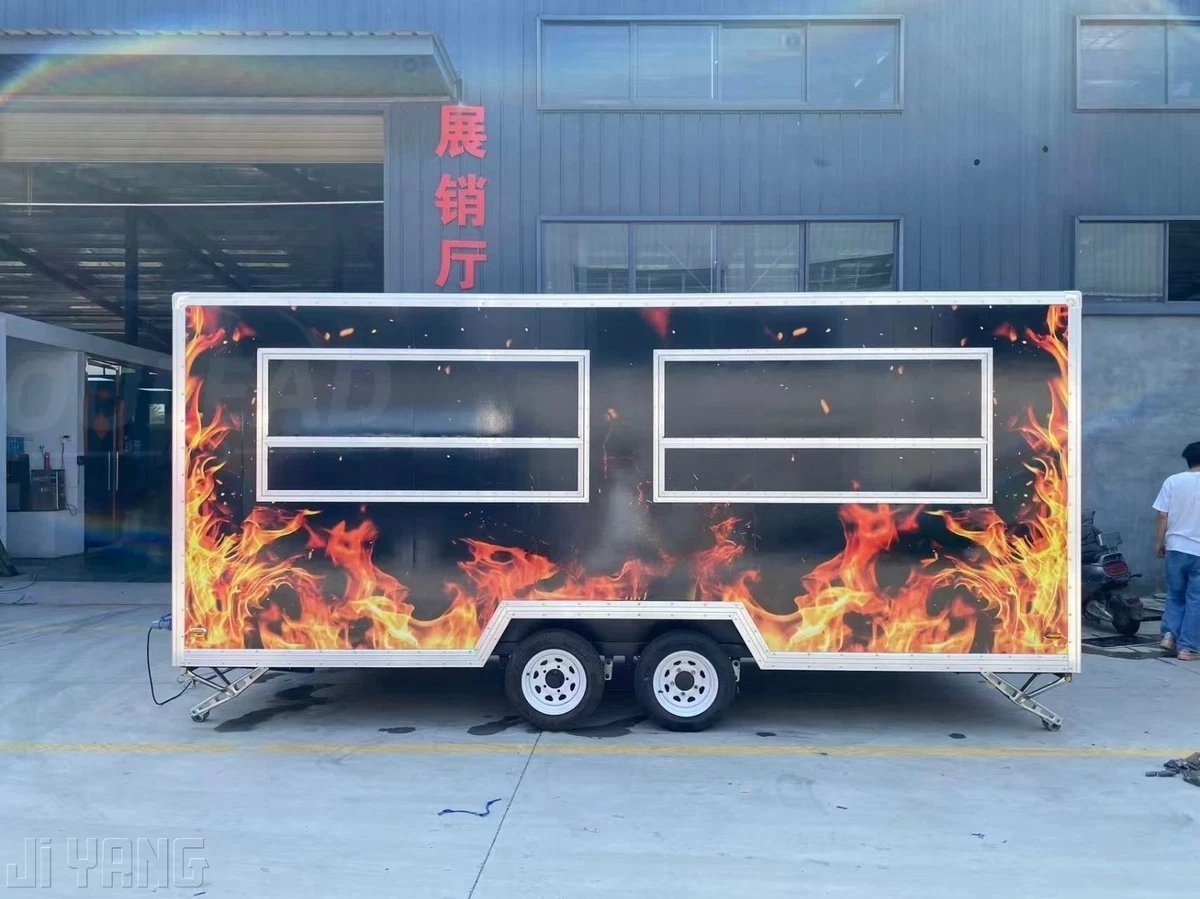 Ready to serve up some serious BBQ? This 16ft Professional BBQ Food Trailer is designed for serious cooks and food vendors who want to make a statement. Featuring a dual axle for better stability and towing, and a bold fire design on the exterior, this trailer not only stands out but is built to last. Whether you’re doing festivals, catering, or popping up at events, this trailer has everything you need to cook and serve your BBQ in style.