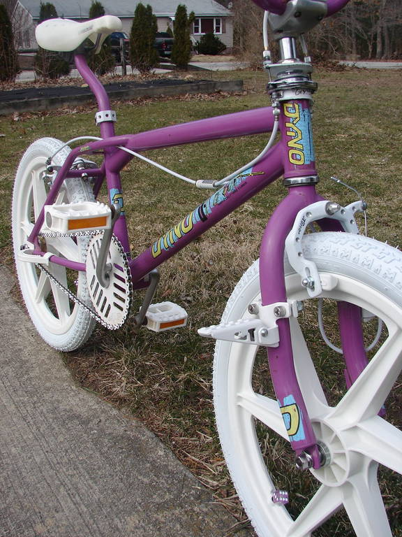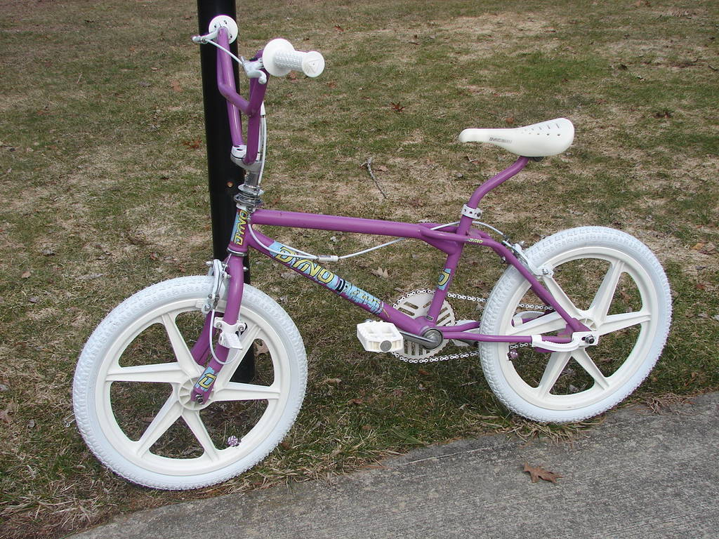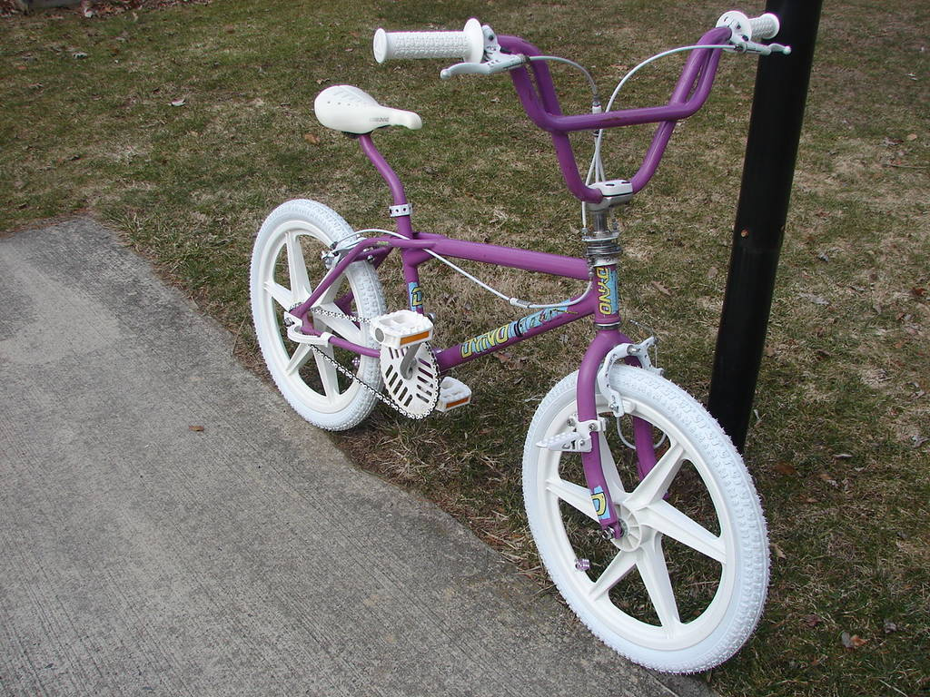 Original 1987 Dyno De Tour in rare lavender finish. Classic old-school freestyle BMX with Dyno’s iconic frame design and smooth ride feel. A standout colorway that’s highly collectible, perfect for display or cruising. A true piece of BMX history.