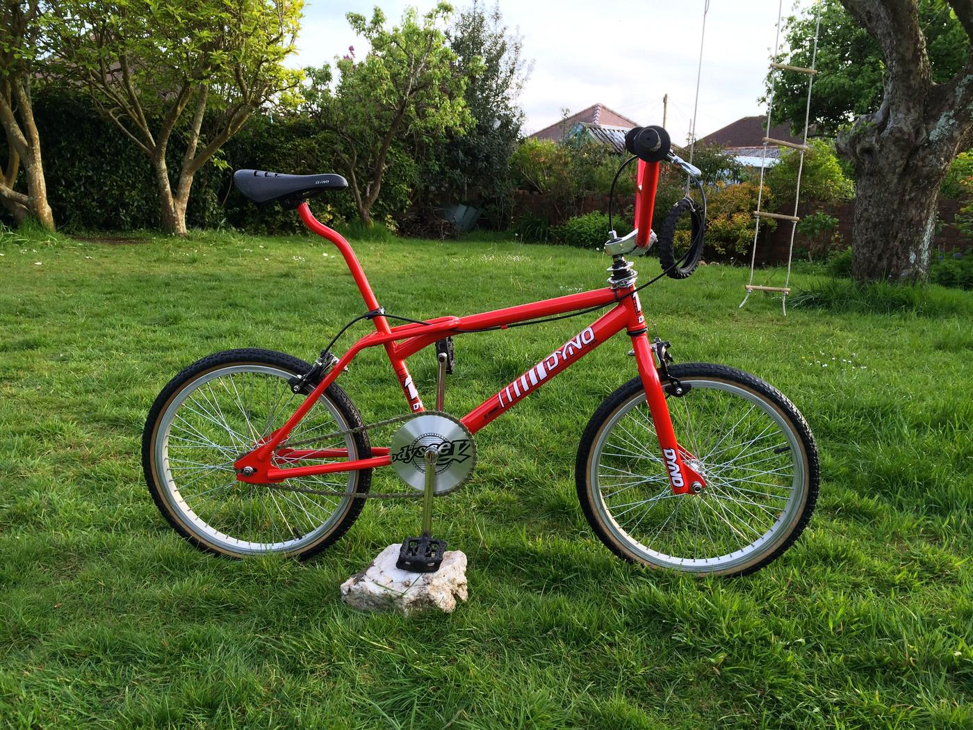 Original 1988 Dyno Compe BMX in classic red. A true old-school freestyle bike from the late 80s, known for its strong frame and timeless design. Highly collectible and perfect for vintage BMX fans, whether for riding or display.