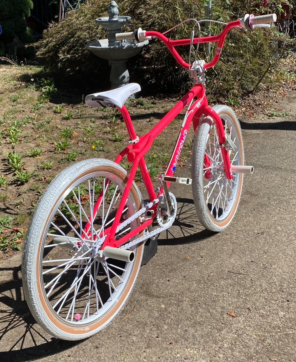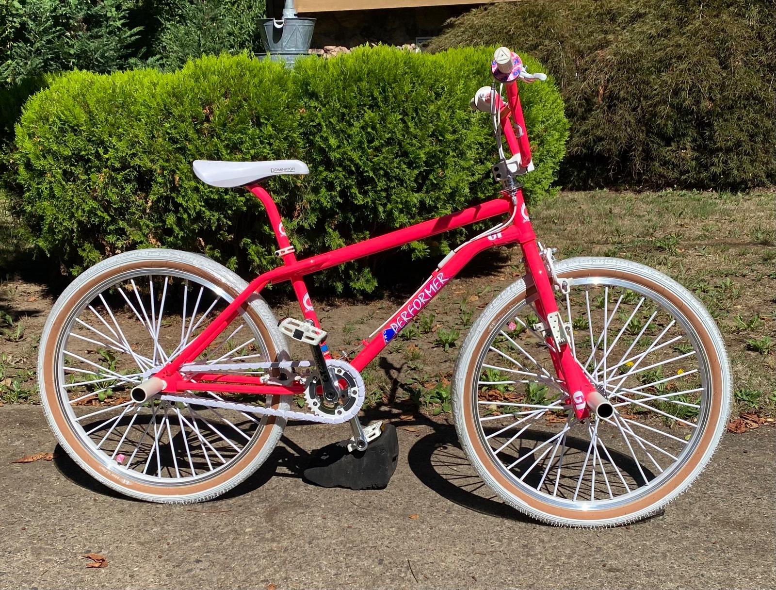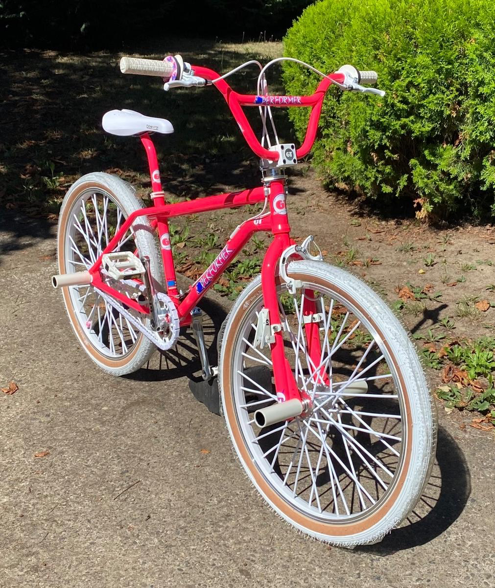 A vibrant BMX from the classic era, the GT Performer 26 features a striking hot pink frame paired with white tires. Built on the original GT Performer platform, this bike combines durability, balance, and iconic styling. Well-preserved and authentic, it is ideal for collectors, vintage BMX enthusiasts, or anyone seeking a genuine piece of BMX history.