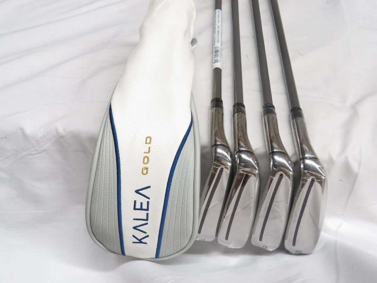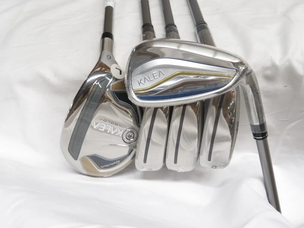 The TaylorMade Kalea Gold Combo Iron Set is a premium women’s golf set designed to deliver effortless launch, greater distance, and maximum forgiveness. This combo configuration replaces the traditional long iron with a 6-Hybrid, making it easier to hit longer approach shots while maintaining the precision and control of irons from the mid-to-short range.