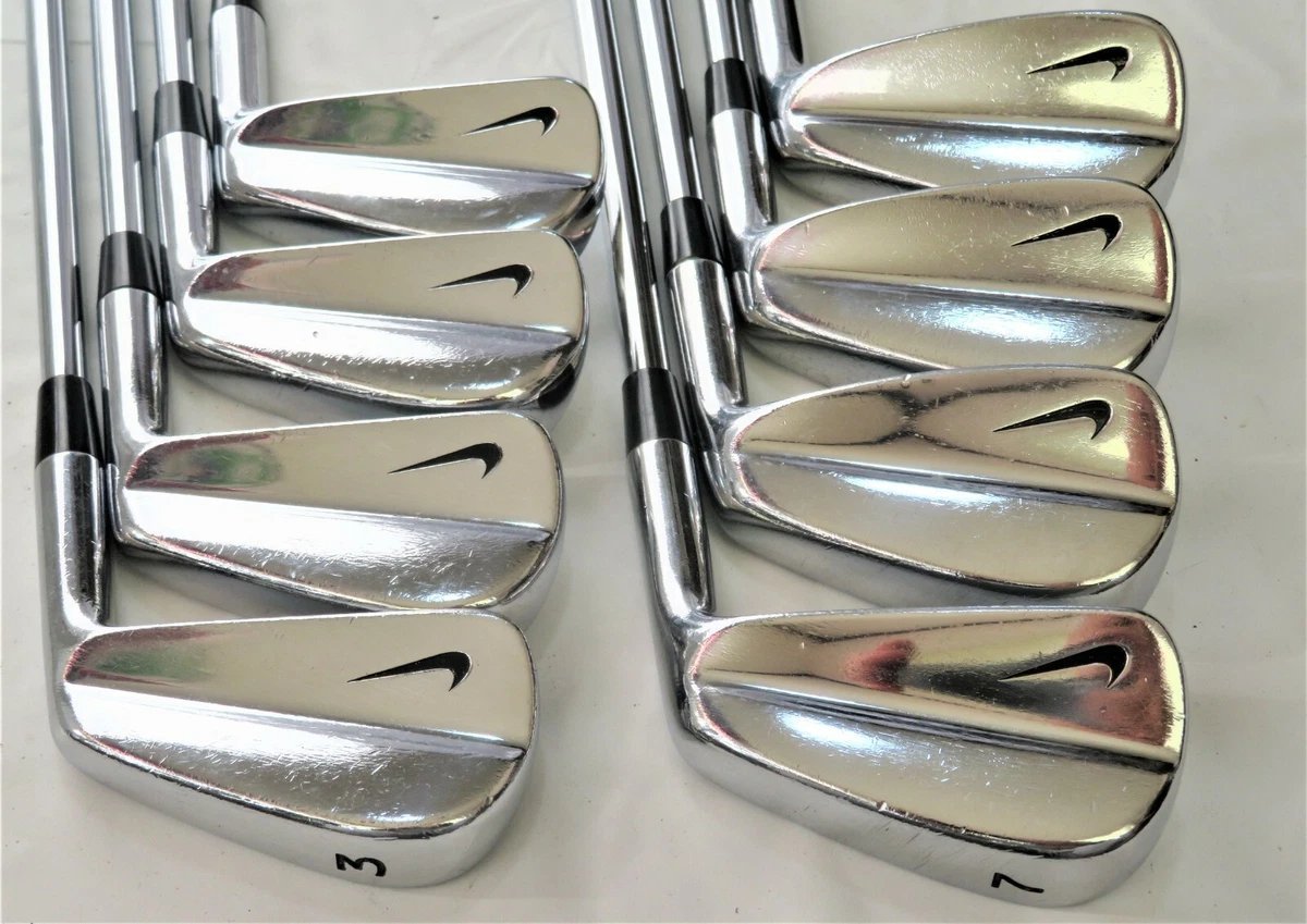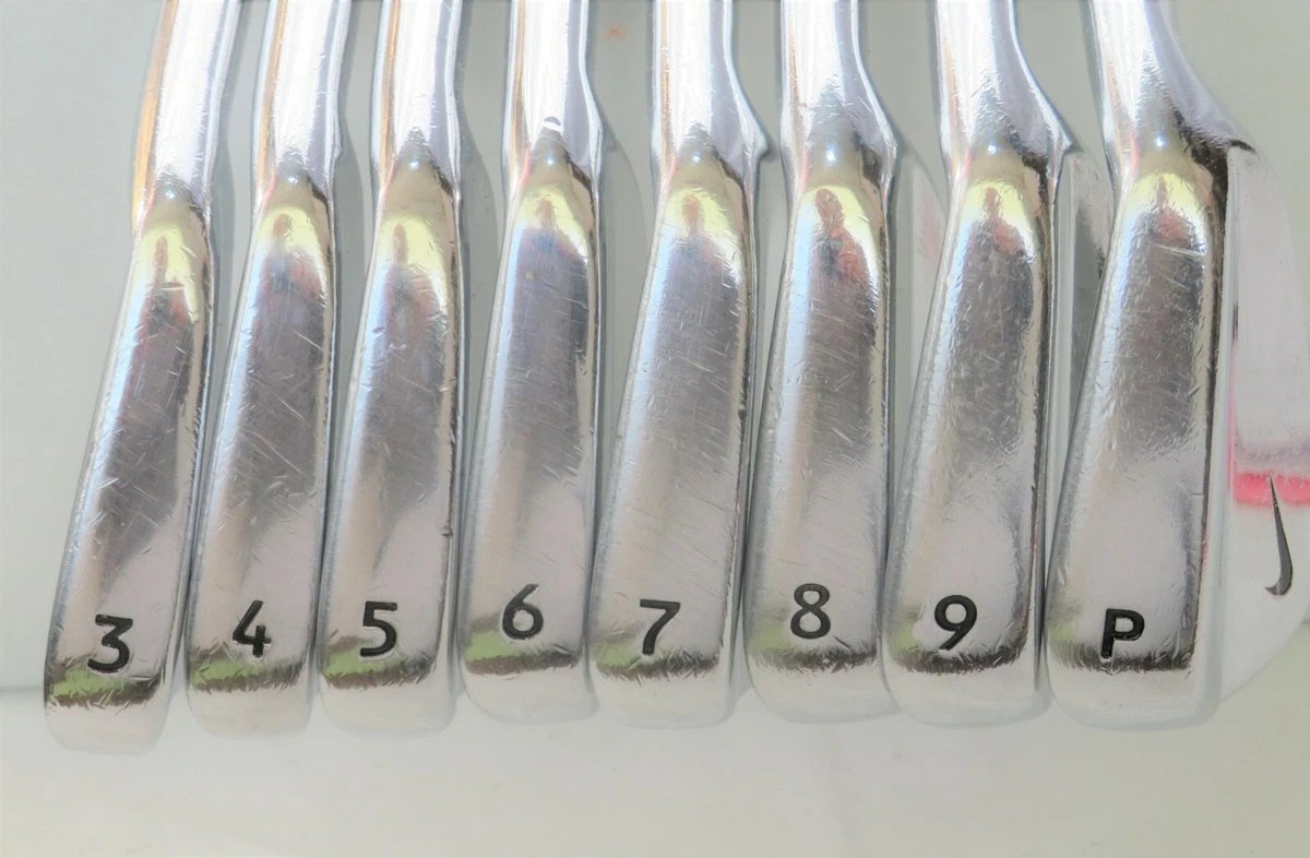 Iconic Nike Blade irons inspired by Tiger Woods, built for precision and elite shot control. This 8-piece set is fitted with Nippon MODUS³ Stiff-flex shafts, delivering a smooth feel, stable launch, and consistent ball flight. Featuring a classic muscle-back design with a clean, tour-preferred profile, these irons offer exceptional feedback and workability—ideal for skilled players and Nike/Tiger collectors seeking pure performance and timeless blade styling.