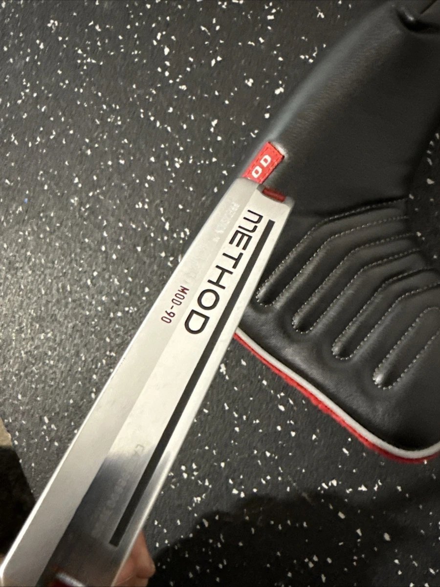 Classic tour-proven design with premium feel. This Nike Method MOD 90 putter is precision milled from 303 stainless steel, delivering a soft yet solid impact with excellent feedback and roll control. The 34-inch right-handed setup offers superb balance and consistency, while the iconic Method technology enhances forward roll. In minty condition and complete with the original headcover, this putter is a standout choice for golfers and collectors seeking performance, quality, and timeless Nike craftsmanship.