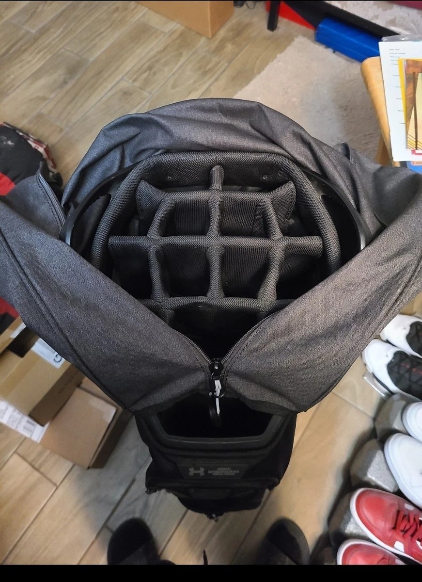 “RARE” signifies a hard-to-find, limited-availability golf bag that is no longer widely produced or easily sourced in the market. This Under Armour Armada Golf Cart Bag stands out due to its premium build quality, distinctive black/gray colorway, and sought-after 15-way divider system — making it especially desirable for collectors, loyal brand enthusiasts, or golfers looking for a unique upgrade.