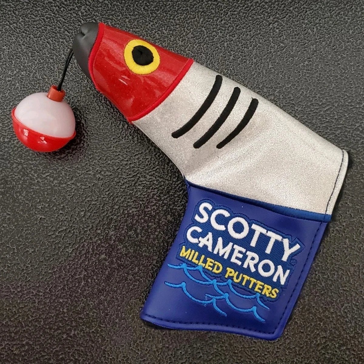 SCOTTY CAMERON 2017 SINK ‘EM Putter Cover – Authentic 2017 Scotty Cameron Sink ‘Em putter cover, designed to protect your putter with premium style and tour-inspired detailing. Crafted from high-quality materials for durability and a snug fit, this collector’s piece is perfect for golfers who want to keep their putter in pristine condition while adding a touch of Scotty Cameron prestige to their bag.