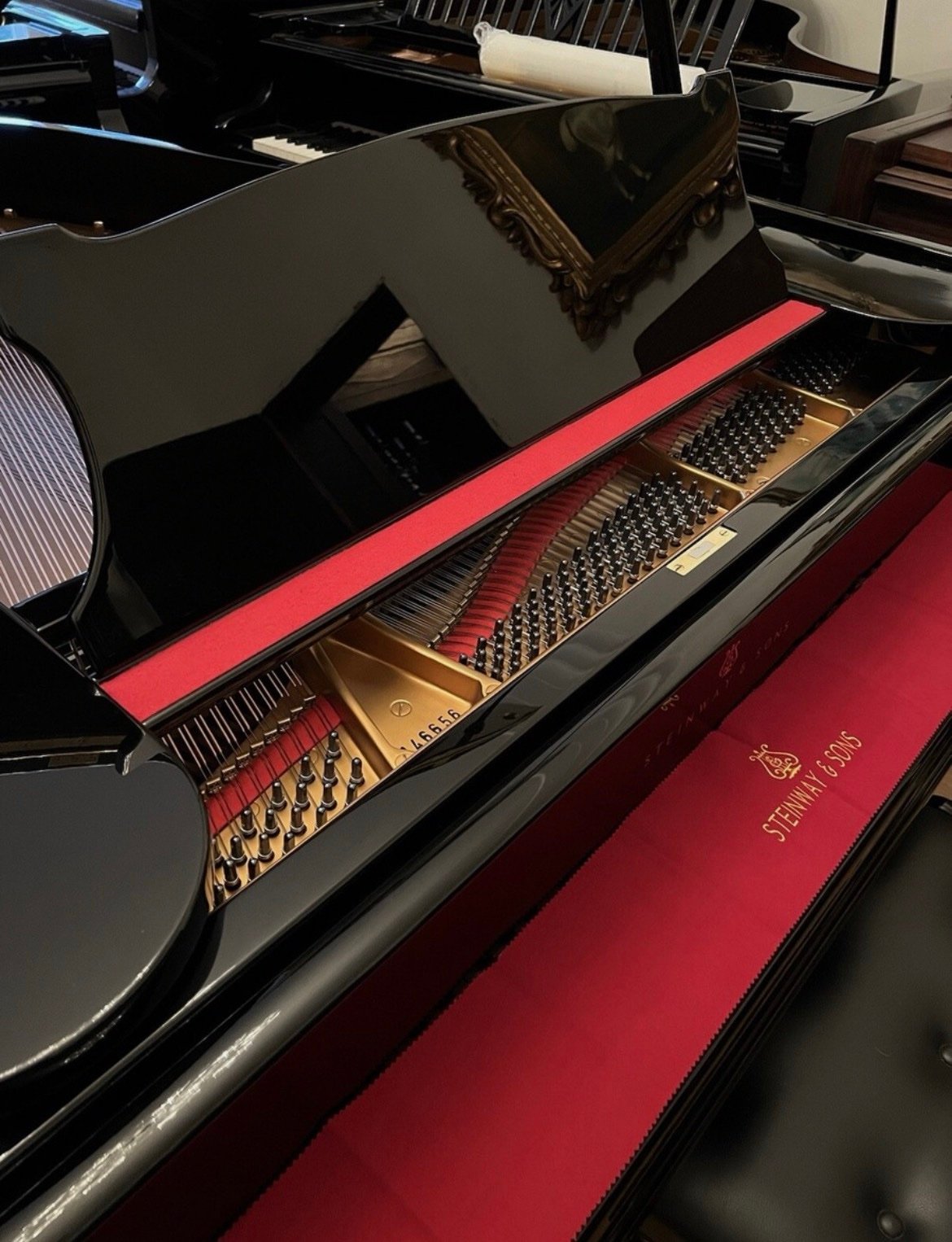 The scope of delivery includes a high-quality wing bench in black with music compartment, designed by Steinway & Sons Bosten / Essex.