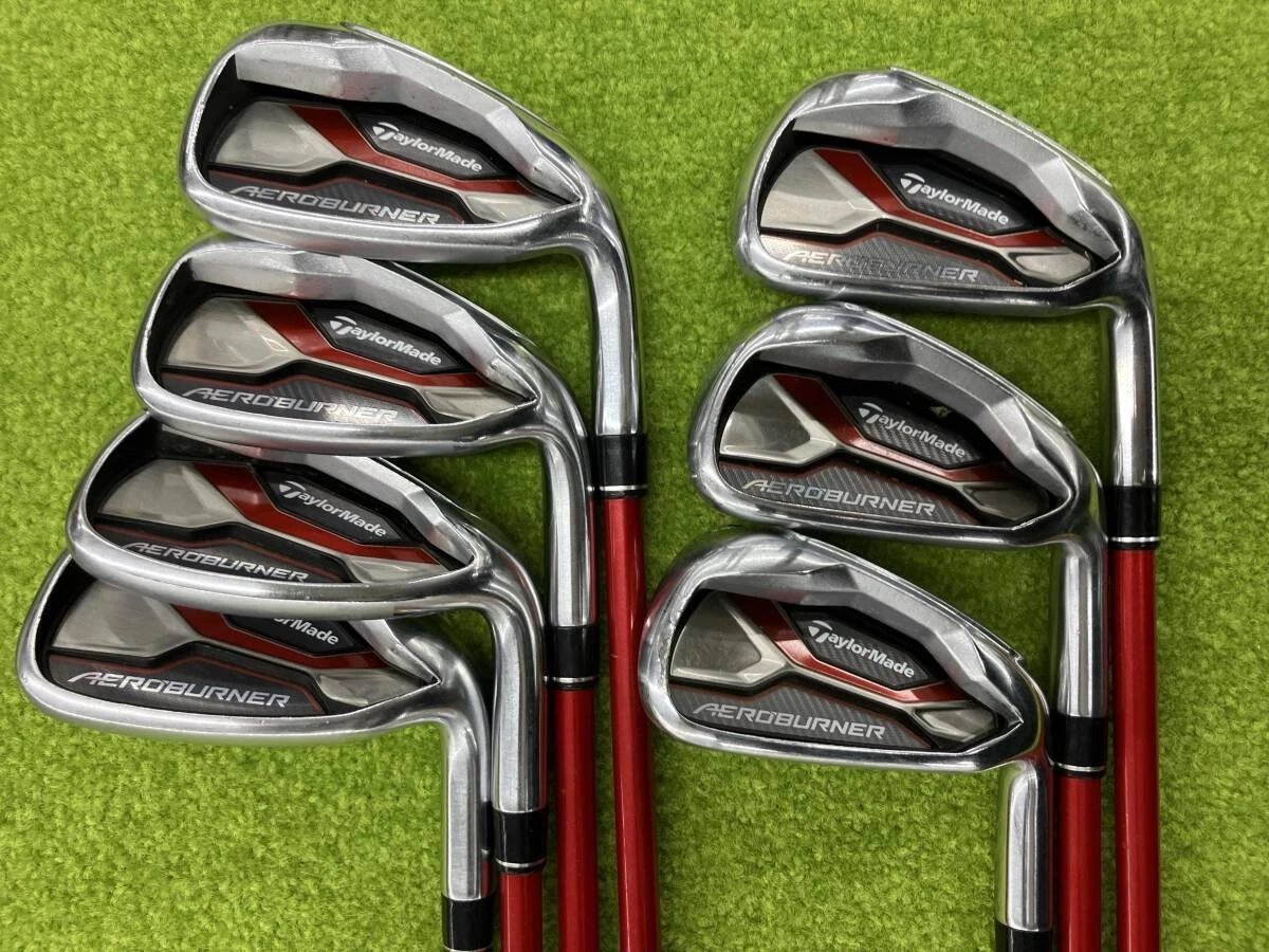 Complete TaylorMade AeroBurner iron set, covering #5 through Sand Wedge, fitted with TM7-415 Stiff Flex shafts. Engineered for distance, accuracy, and forgiveness, the AeroBurner irons feature a high-launch, low-spin design with optimized weight distribution for consistent ball flight. Ideal for players seeking playable, powerful irons that deliver both performance and confidence from every shot.